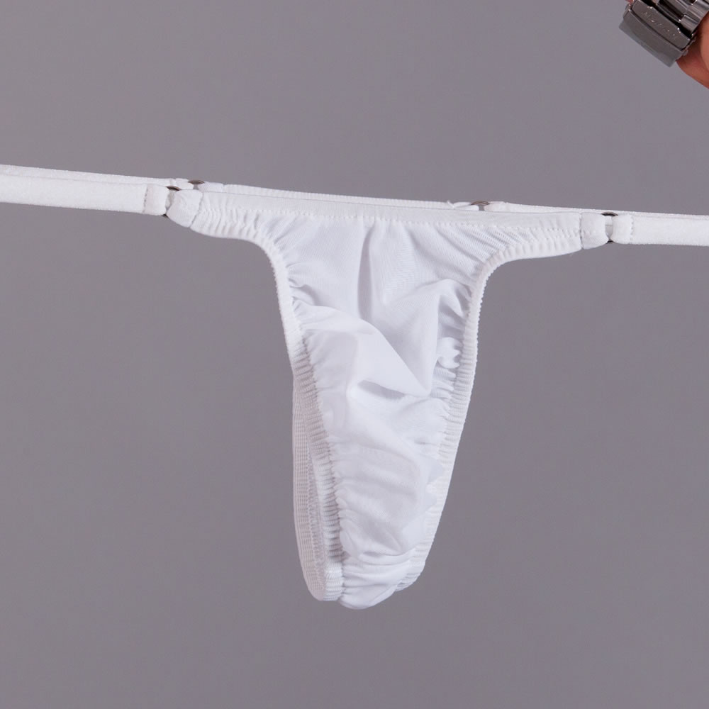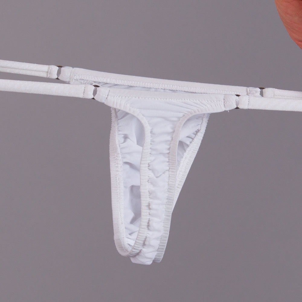 Unsere Exklusiv - Serie zeichnet sich durch einen erstklassigen Tragekomfort aus. Im Vergleich zu unseren regulären String Tangas hat dieser schöne Men String Tanga einen elastischeren Beutel und die Einfassung ist Dank der Zick Zack - Naht deutlich flacher bzw. unauffälliger. Auch der Übergang vom Beutel zum Steg, welcher durch den Po verläuft, ist nahtlos. Du wirst dieses einzigartig gute Tragegefühl lieben! Dieser String ist nicht nur ein idealer Badestring, sondern auch als Unterwäsche perfekt geeignet! Der schlichte weiße Stoff ist schön transparent und super elastisch.