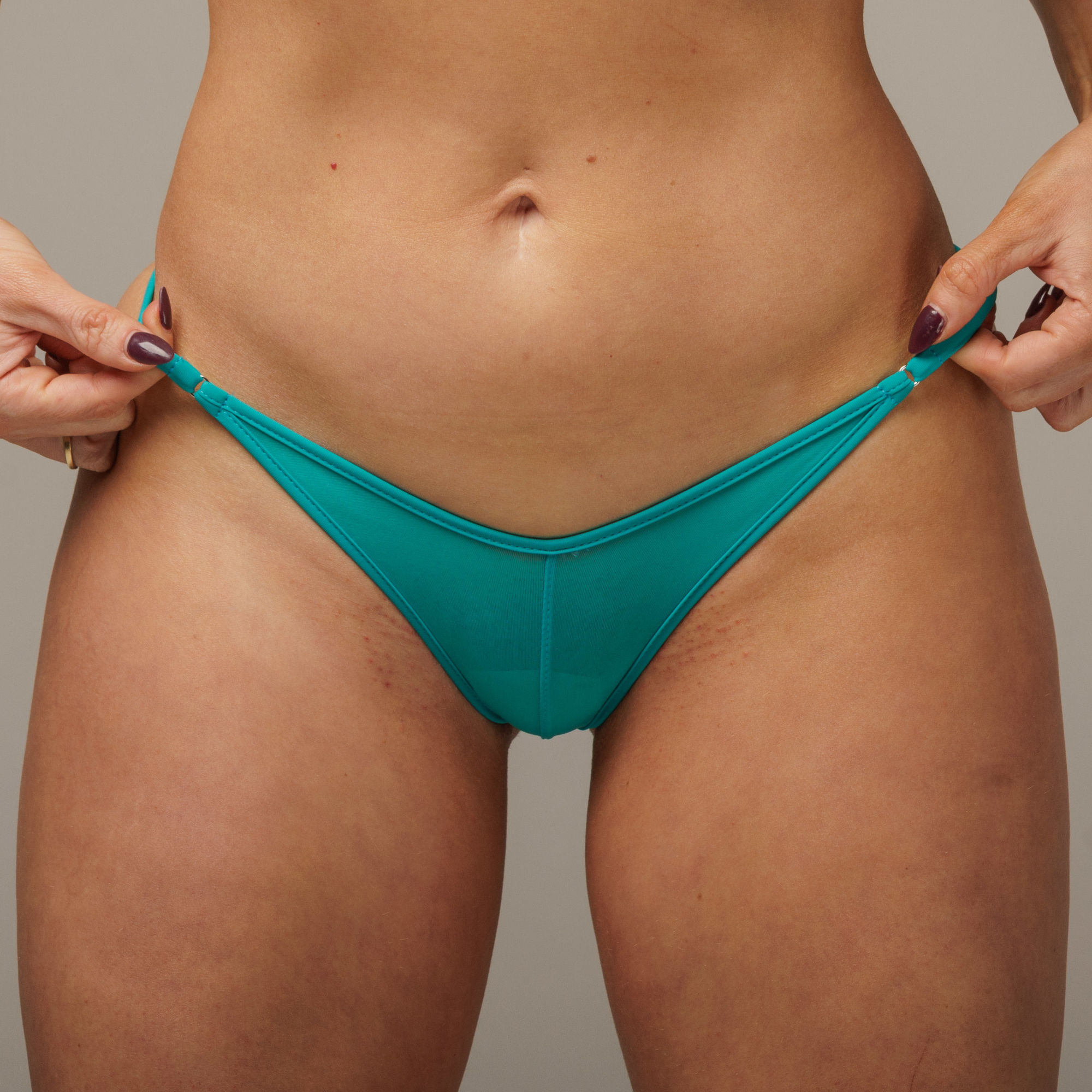 Als großes Season-Opening-Special präsentieren wir euch unsere exklusive Emerald Kollektion. Ein luxuriöser Bikini-Stoff in der wunderschönen Trendfarbe des Jahres 2025. Der sanfte Smaragd-Farbton erstrahlt auf jedem Hauttyp einzigartig schön. Bei diesem Camel Toe String Tanga haben wir eine Mittelnaht eingearbeitet, sodass ein sexy CamelToe-Effekt entsteht. Dadurch wird Dein Bikinibereich ganz besonders in Szene gesetzt ;)