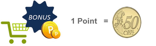 Example: You buy and pay for articles worth 50 Euro, then you will receive 5 bonus points.