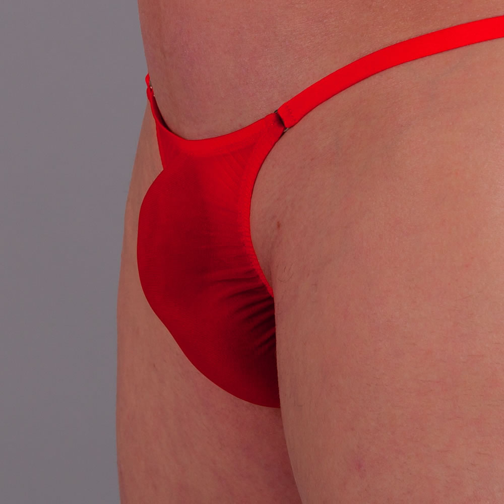 Our exclusive - series is characterized by a first-class wearing comfort. Compared to our regular thongs, this beautiful men's thong has a more elastic pouch and the edging is much flatter or more inconspicuous thanks to the zigzag seam. Also the transition from the pouch to the bridge, which runs through the buttocks, is seamless. You will love this uniquely good wearing feeling! This thong is not only an ideal swim thong, but also perfectly suitable as underwear! The colorful red fabric is beautifully transparent and super elastic.